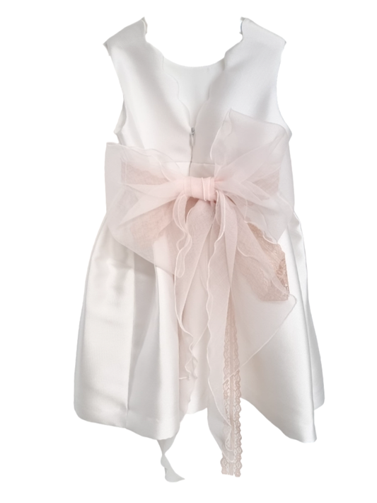 Mimilù abito da cerimonia in mikado con tulle bianco rosa