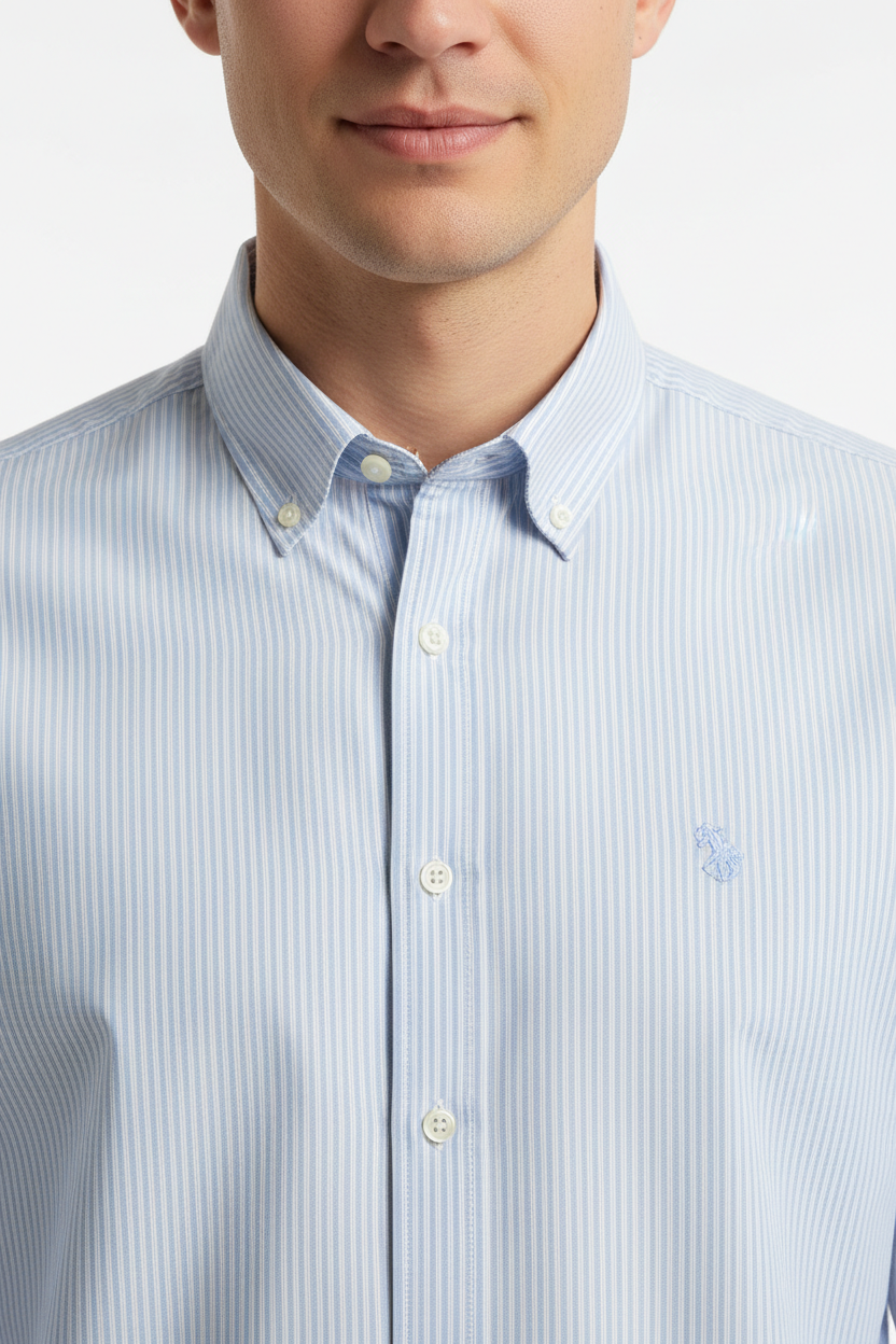 - Collo button down che aggiunge un elemento di classicità e stile.