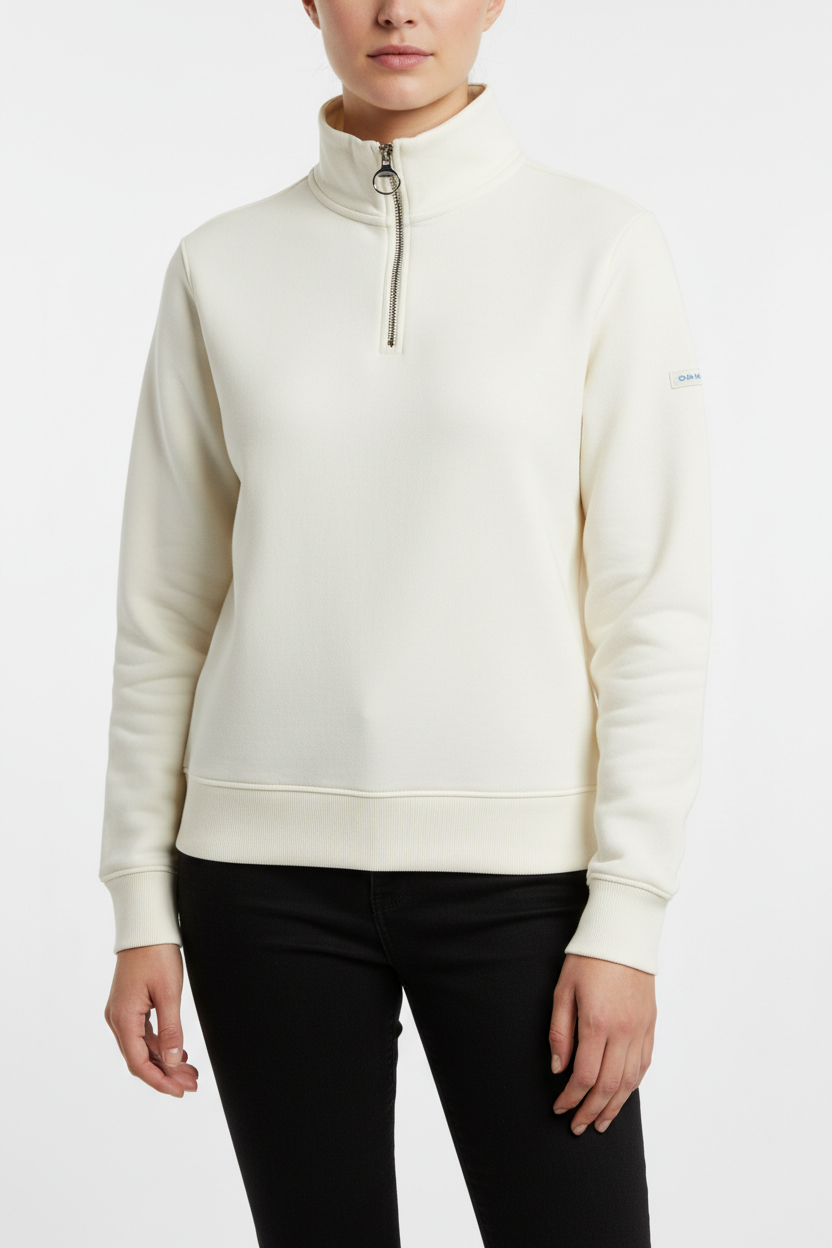 La chiusura a mezza zip consente una vestibilità personalizzata, mentre i dettagli a contrasto conferiscono un tocco di originalità. Il ricamo del logo aggiunge un elemento di classe e riconoscibilità, rappresentando con orgoglio il marchio.