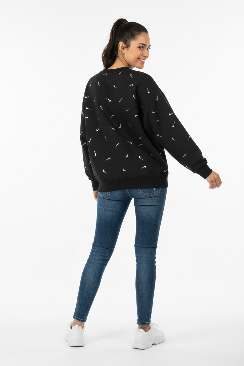 Il design girocollo conferisce un tocco classico e versatile, consentendo di abbinarla facilmente a qualsiasi outfit, sia per un look casual che per momenti di relax. La stampa distintiva e il logo Nike sulla felpa non solo assicurano un aspetto moderno, ma rappresentano anche un marchio di qualità e prestazione.