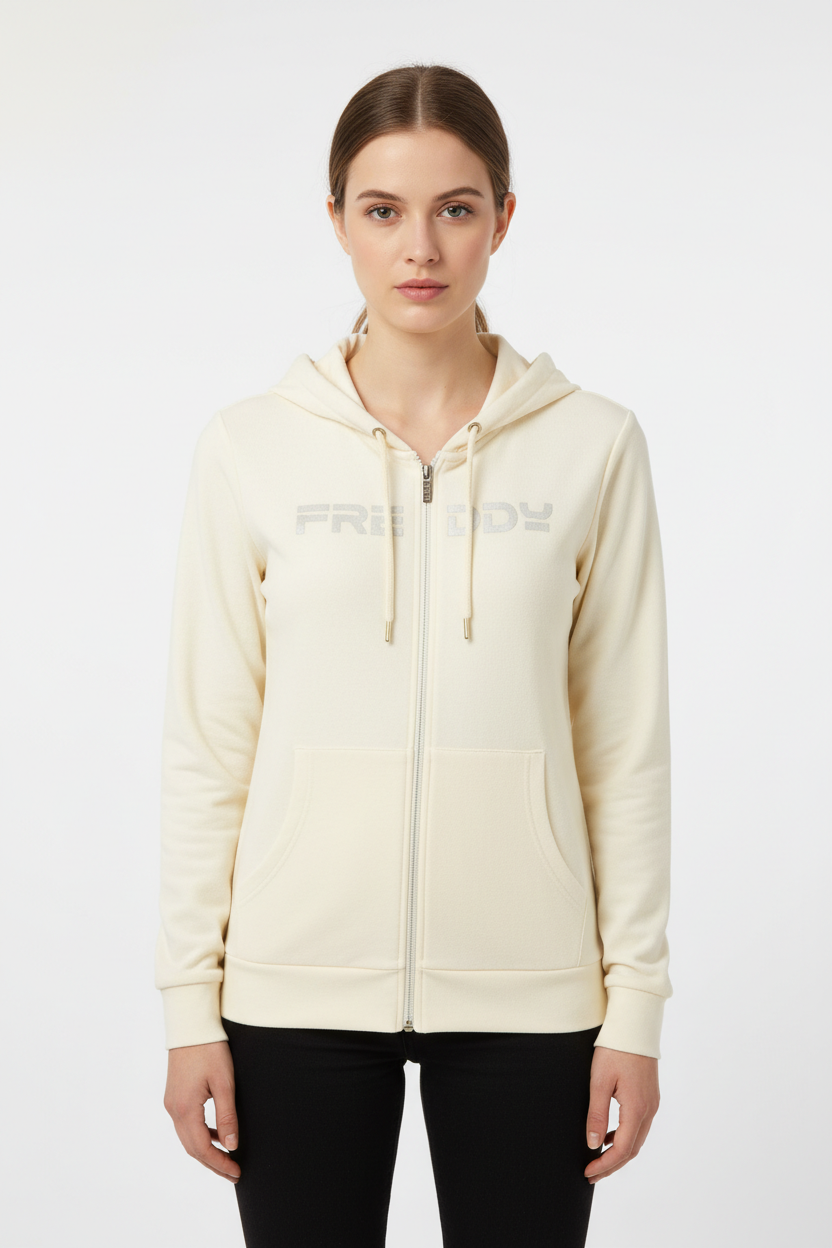 Scoprite l'eleganza e la praticità della Freddy Felpe, un MUST-HAVE nel vostro guardaroba. Questa felpa a maniche lunghe con cappuccio rappresenta la fusione perfetta di comfort e stile.