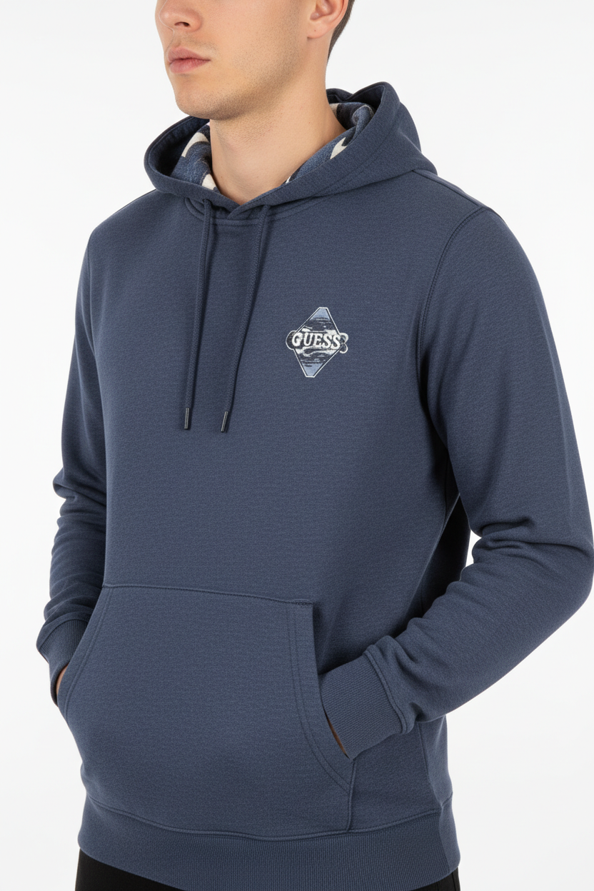 Il logo Guess Jeans, finemente posizionato, sottolinea l'autenticità e la qualità del prodotto. Questa felpa è perfetta per creare un look casual ma ricercato, adatta sia per un'uscita informale che per momenti di relax a casa.